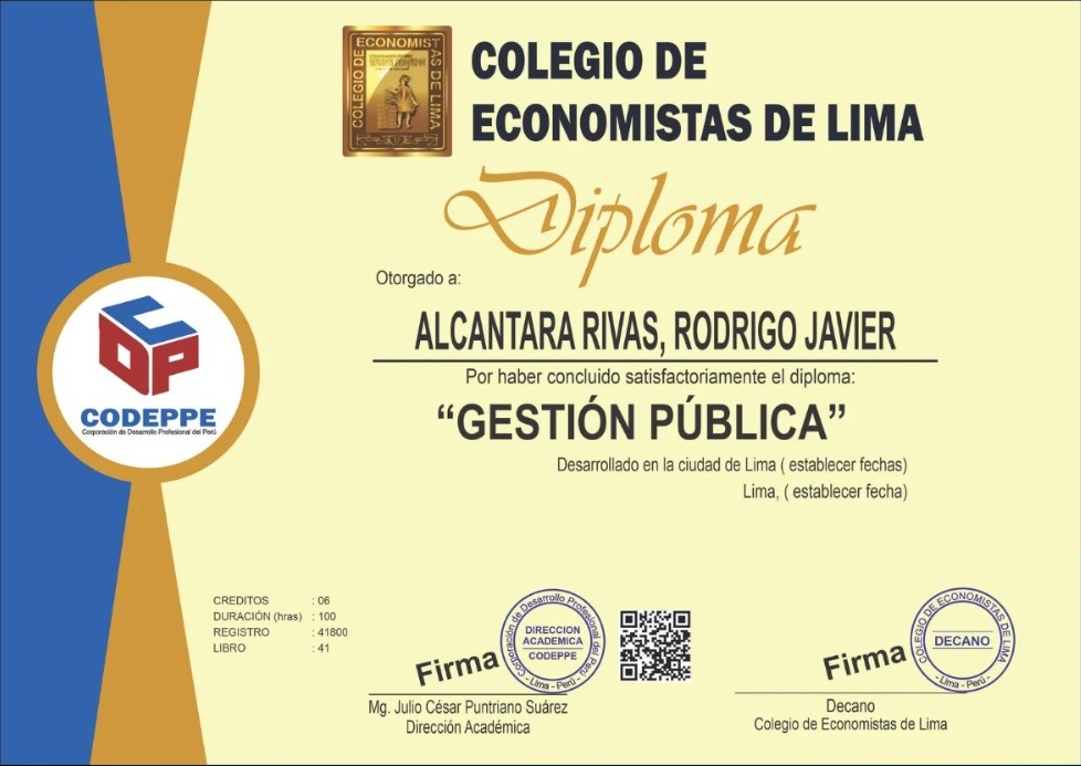 Potencia tu CV documentado. Al finalizar, obtendrás una certificación física con respaldo del Colegio de Economistas, válido para concursos públicos.